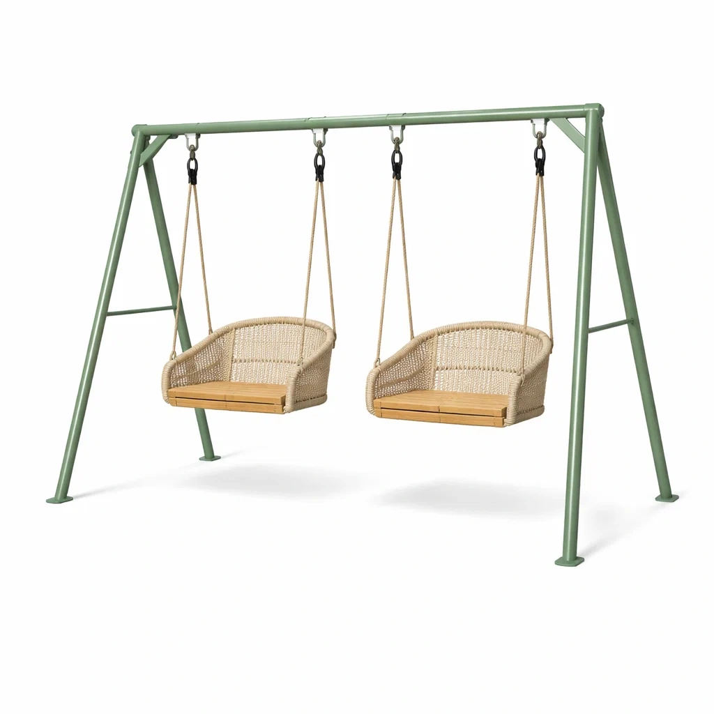 Ensemble de balançoires en métal et bois avec sièges en plastique