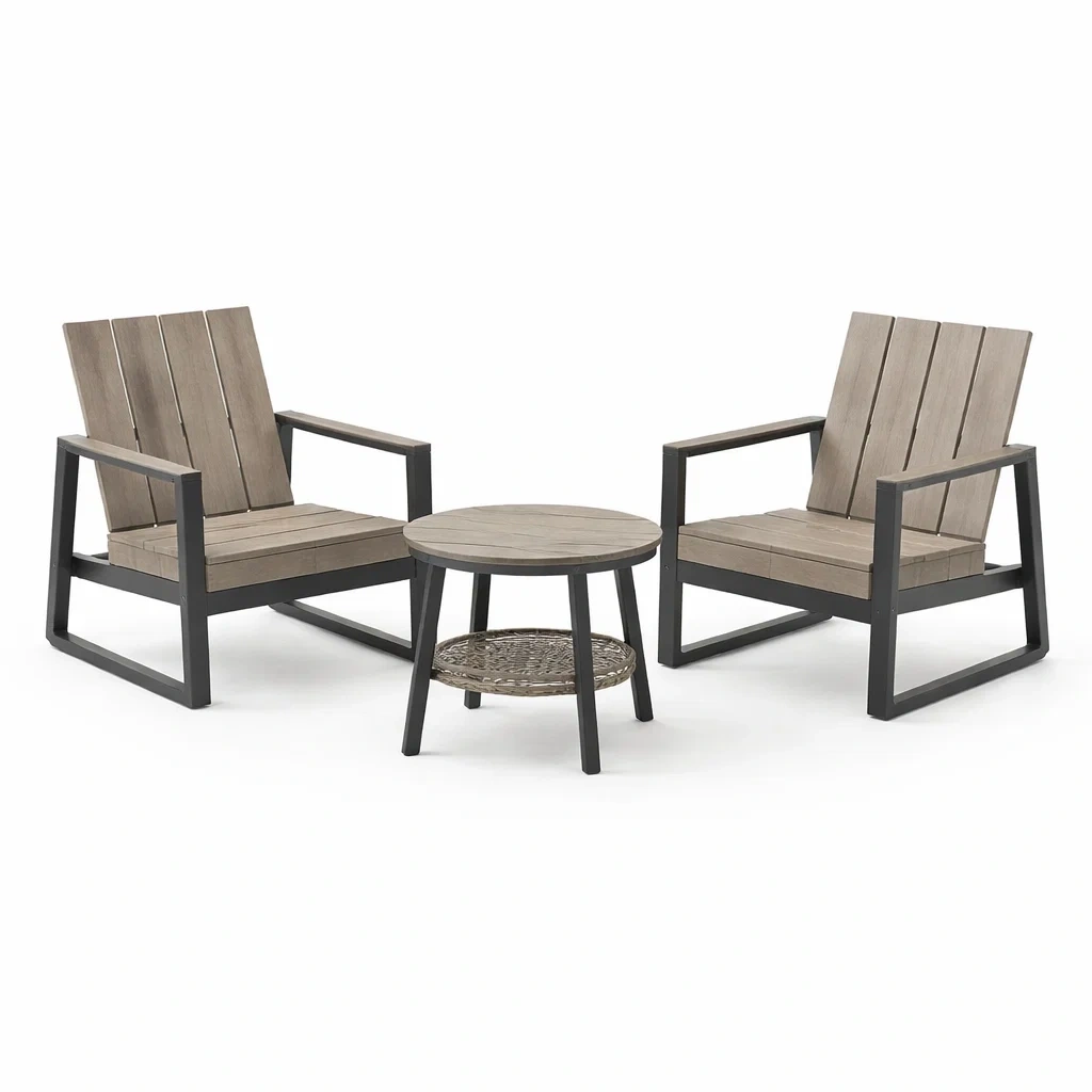 Ensemble de détente 3 pièces en bois composite et métal gris