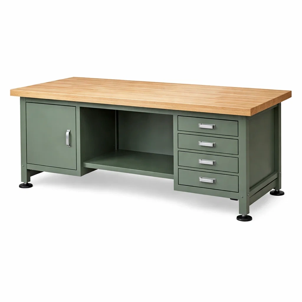 Établi en bois et métal avec tiroirs et porte vert naturel 200x75x85 cm